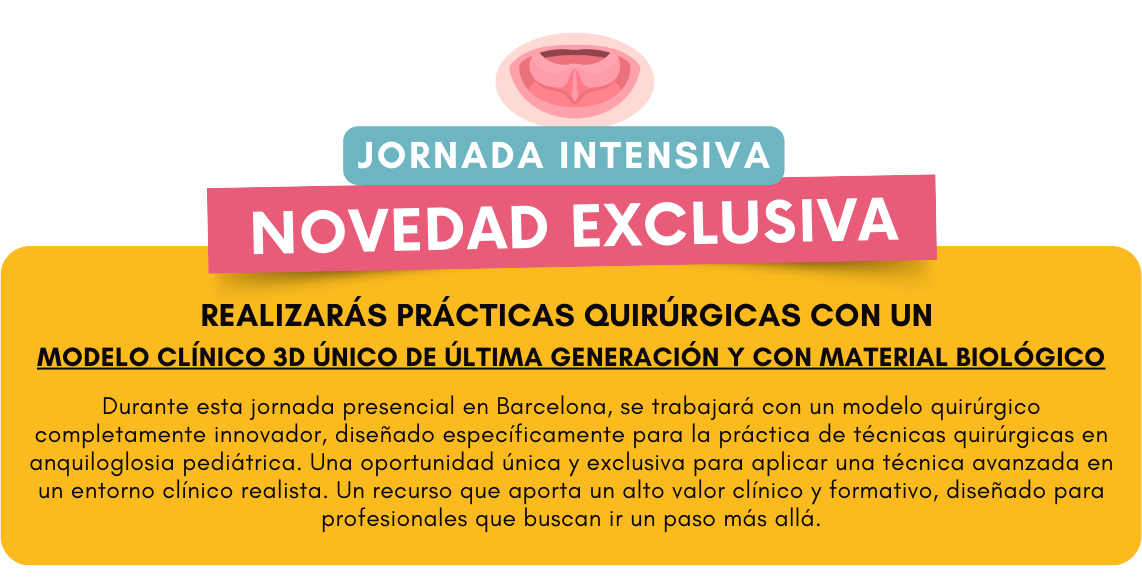 Centrada en la adquisición de competencias en el abordaje quirúrgico de la anquiloglosia y toma de decisiones clínicas.